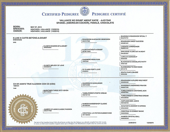 Ch K-Line N Cutts Beyond A Doubt x Ch Ky-Ann's True Illusion CD CGN